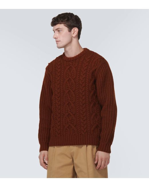 Dries Van Noten Cable Knit Wool Sweater In Brown For Men Lyst Uk